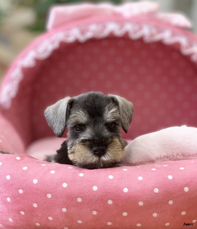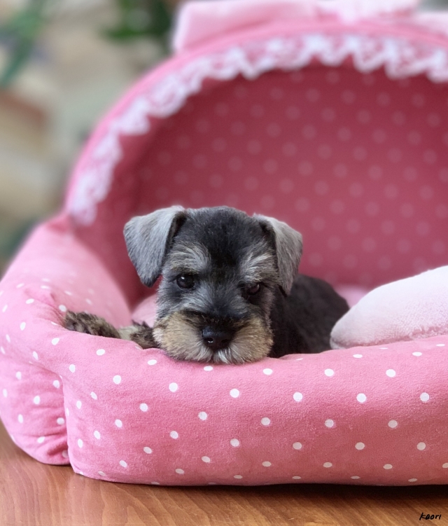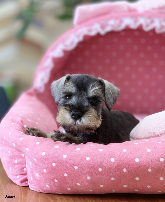 シュナウザーを主力にされているブリーダーさんだと認識しており、ボスちゃんはどうかなあと正直不安でしたがとても可愛く健康的なボスちゃんをいただきました。 掲載されていた写真より実物は想像以上に可愛くて即決し見学させていただいたその日に連れて帰りました。連絡をして、翌日行きますぅって勝手な申し出にも関わらず敏速かつ親切に対応して頂き大満足です。契約に対しても一つ一つ丁寧に説明してくださり、わかりやすかったです。この度は可愛いボスちゃんとのご縁をいただき、本当に有り難うございました。 (大阪府 女性)