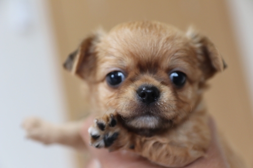 可愛過ぎる仔犬ちゃんに一目惚れし急だったのにも拘らず快くお邪魔させて頂きました。犬舎も大変綺麗でパパ犬ママ犬にも対面出来てブリーダー様のチワワちゃんに対する愛情をとても感じました。譲って頂いた仔犬ちゃんは自宅に到着後、先住犬が居ても物怖じする事無くフードをパリパリと食べトイレを外す事もなく出来元気に遊んで過ごしてました。可愛い仔犬ちゃんを譲って頂いて有難う御座いました。これからも時折成長過程を報告しますね。(静岡県 女性)
