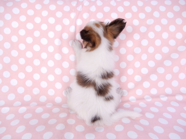 パピヨン ホワイト&レッドセーブル ♂(男の子) 千葉県【 ブリーダーズ 】