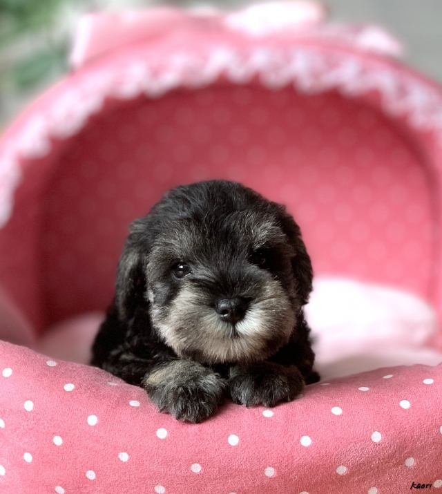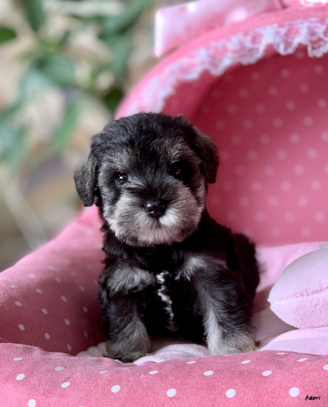シュナウザーを主力にされているブリーダーさんだと認識しており、ボスちゃんはどうかなあと正直不安でしたがとても可愛く健康的なボスちゃんをいただきました。 掲載されていた写真より実物は想像以上に可愛くて即決し見学させていただいたその日に連れて帰りました。連絡をして、翌日行きますぅって勝手な申し出にも関わらず敏速かつ親切に対応して頂き大満足です。契約に対しても一つ一つ丁寧に説明してくださり、わかりやすかったです。この度は可愛いボスちゃんとのご縁をいただき、本当に有り難うございました。 (大阪府 女性)