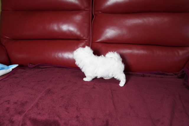 とっても小さくて可愛いマルチーズのお姫様を我が家に迎えさせていただきました。 初めての空輸でとても心配で不安でしたがお迎えの時には元気で、とても人懐こく、トイレも教えてないのにきちんとペットシーツの上で出来ました‼︎ 福田さんは色々な質問、要望にも一つ一つ応えてくださり、引き渡し前にカットなどしてくださってたので、ブラッシングも嫌がる事もなくさせてくれます。 母親犬もとても綺麗な可愛い仔でした‼︎ こんなに可愛いく賢い仔を我が家に迎えられて福田さんには感謝です。(大阪府 女性)