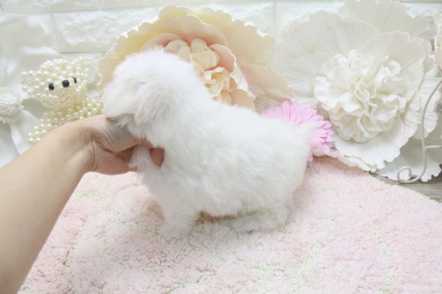 | コメント | 10月23日撮影 お鼻もどん詰まりで短く、お目めまんまるで 毛量たっぷり多めのお顔のとっても可愛いマルチーズ男の子♪ 性格は人なつこくて明るい子です。 無駄吠えもなく、とても飼いやすいタイプです。 10月23日現在 生後54日で体重650gです。 成犬時予想体重は~1.8kg前後の~小ぶりサイズ予想です。 父 1.2kg 母1.6kg 1回目のワクチンは5種接種済みです。 |