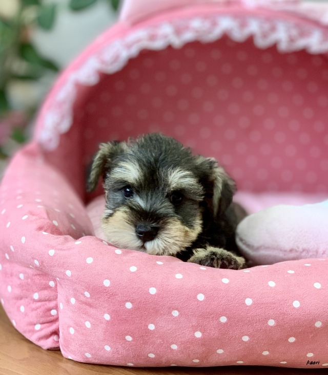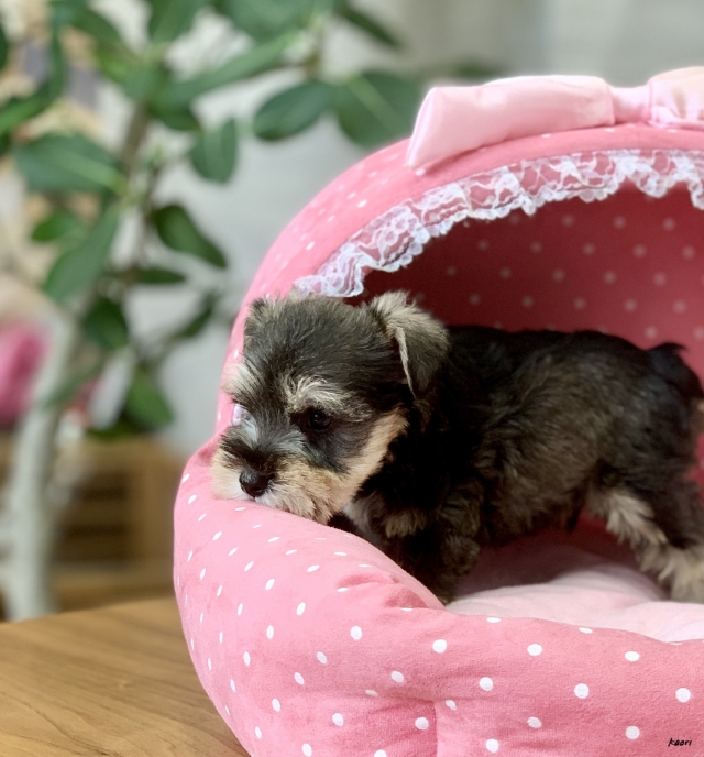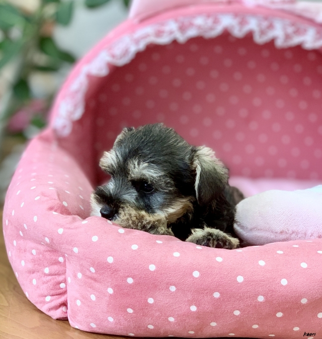 シュナウザーを主力にされているブリーダーさんだと認識しており、ボスちゃんはどうかなあと正直不安でしたがとても可愛く健康的なボスちゃんをいただきました。 掲載されていた写真より実物は想像以上に可愛くて即決し見学させていただいたその日に連れて帰りました。連絡をして、翌日行きますぅって勝手な申し出にも関わらず敏速かつ親切に対応して頂き大満足です。契約に対しても一つ一つ丁寧に説明してくださり、わかりやすかったです。この度は可愛いボスちゃんとのご縁をいただき、本当に有り難うございました。 (大阪府 女性)