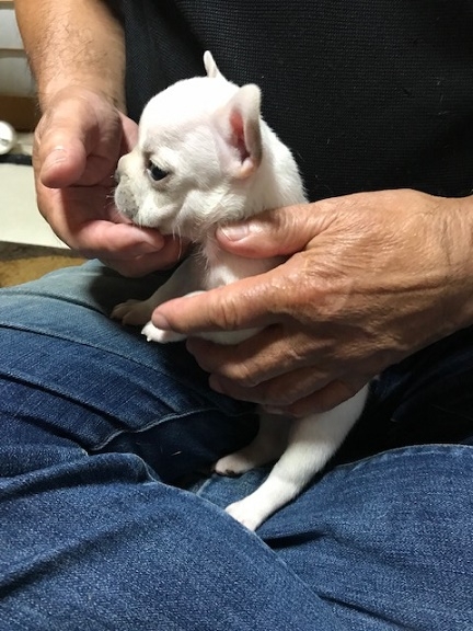 掲載されていた仔犬が可愛らしく見学を希望、西村さんよりすぐご連絡頂きました。見学に行った時には仔犬だけじゃぁ無く親犬や他の仔犬など沢山のフレンチにふれ合い、とても気さくな西村さんとお話ししていて幸せなひと時でした。帰りは近くの高速の入り口まで案内して頂きました。我が家に迎え入れて数日経ちますが元気で愛くるしくってたまらないです。(大阪府 女性)