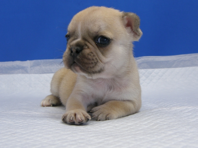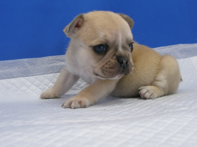 | コメント | 父犬ブリンドル 体重11㎏弱 母犬 フォーン 体重8㎏から生まれたフオーンの男の子です。 現在はお母さんのお乳と離乳食を食べ元気に成長しています。 とてもシャイで甘えん坊の男の子です。 フォーン色でも薄い優しい毛色の子です。 ライオンの赤ちゃんみたいな顔をしています。 見学はいつでもできますのでお問い合わせください。 |
