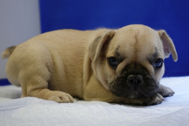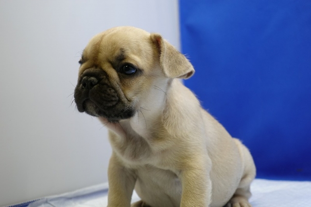 | コメント | 父犬ブリンドル 体重11㎏弱 母犬 フォーン 体重8㎏から生まれたフオーンの男の子です。 おでこの線はリッジ(逆毛)です。 とてもヤンチャさんで元気に飛び跳ねています。 食欲もあり、他の兄妹たちと仲良く生活しています。 見学はいつでもできますのでお問い合わせください。 |