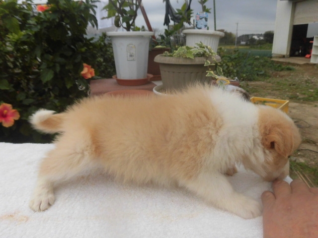 カーナビに住所登録した場所に到着した時は、想像していた雰囲気と違って、エッ⁈ ここは農家さん? って思いましたが、山崎ブリーダーにお会いして、いろいろお話しさせて頂き、そのお人柄と、実際の仔犬ちゃんに接した時、絶対にこの仔が良い!と思いました。山崎さんから 2頭目を購入希望の北海道のオーナーさんとも偶然に出会えて、訓練について教えて頂き、とても勉強になりました。何か有れば、いつでも電話して下さい。と言って頂き、とても心強く、安心出来ました。これからの、この仔との生活が本当に楽しみです!山崎さんと出会えて良かったです!ありがとうございました!(沖縄県 女性)
