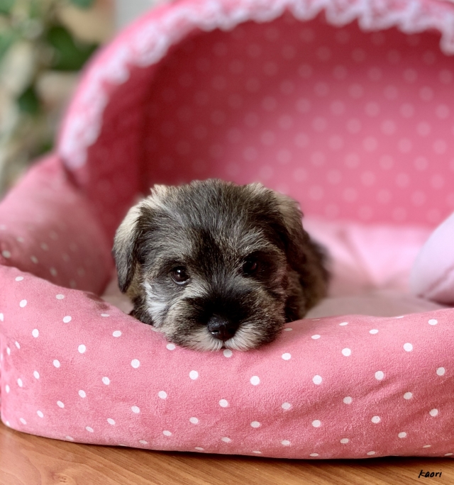 シュナウザーを主力にされているブリーダーさんだと認識しており、ボスちゃんはどうかなあと正直不安でしたがとても可愛く健康的なボスちゃんをいただきました。 掲載されていた写真より実物は想像以上に可愛くて即決し見学させていただいたその日に連れて帰りました。連絡をして、翌日行きますぅって勝手な申し出にも関わらず敏速かつ親切に対応して頂き大満足です。契約に対しても一つ一つ丁寧に説明してくださり、わかりやすかったです。この度は可愛いボスちゃんとのご縁をいただき、本当に有り難うございました。 (大阪府 女性)