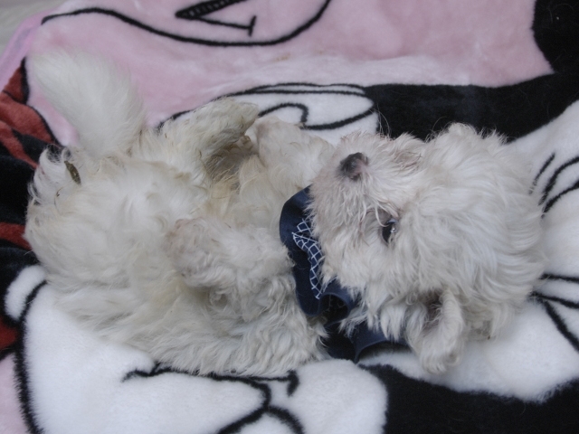 この度はとっても元気な子をありがとうございました。 見学の際は駅まで迎えにきていただき、説明もとても丁寧で安心しました。 空輸で送っていただき、ありがとうございました。 迎えてから一週間が経ち、家にも慣れて、へそ天で寝ています。 トイレトレーニングも、来た時から8割できていて、今ではほとんど失敗しなくなりました。 可愛く元気で、毎日元気に飛び跳ねています。(奈良県 女性)