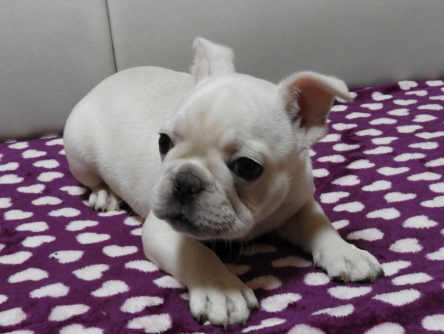 ずっとフレブルちゃん探しをしてましたが、やっと、この子と思える子に出会えました。ブリーダーさんも、とても気さくな方でしたので どんな質問でも聞きやすかったですし、また分かりやすく説明して下さいました!愛情いっぱいかけていただいてたので、我が家にきてからも、とてもお利口さんです。夜泣きも全くありませんでした。とてもとても可愛い子と出会えて、すごく今 幸せです。 (熊本県 女性)