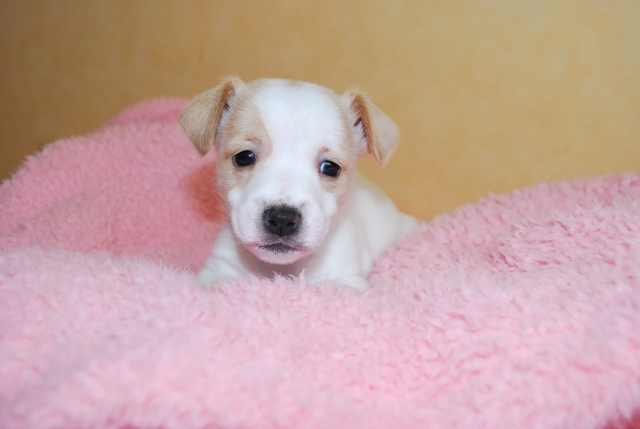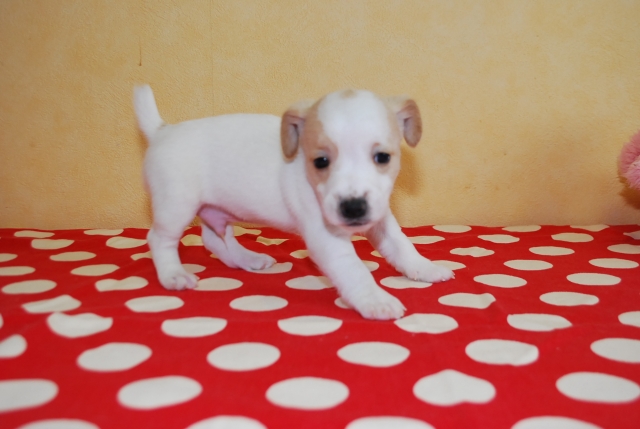 | コメント | 愛嬌たっぷりのジャックラッセル・テリアです。 楽しい家族になることまちがいなしです! 毛質はまだわかりません。 11月9日現在の体重は 700gです。 ワクチン1回分(5500円)は別途お願い致します。 お引渡しは11月下旬頃ですが子犬価格の30%以上ご入金でご予約は承ります。 お引渡し可能日から1週間は無料で預かりますが、それ以上お預かりの場合は1日 1000円別途頂きます。 |