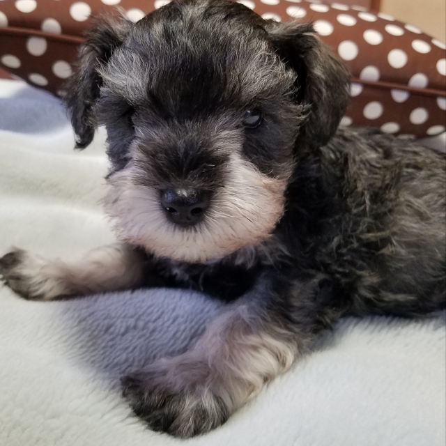 | コメント | 父親:ソルト&ペッパー 母親:ブラック&シルバー 1頭1頭、母犬も子犬も手間暇、愛情をかけて「家庭犬」を育てております。 素敵なご家族様の元へ巣立つ事を願っておりますので、お気軽にご質問やご相談をして下さいませ。 当方はとにかく、時間をかけて愛情を注ぎ、コロコロと大きく丈夫に育てる事に信念をもって育てております。 ※カラーや大きさは成長の過程で違いが出てきます。ご見学可能となりましたので是非お越し頂き、子犬に触れてくださいませ。 即日 お引き渡し可能となりました |