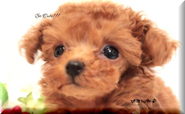 | コメント | ♥ママ・・ぬいぐるみのように可愛い かりん2.3㌔ ♥パパ・・永遠の赤ちゃん つぶ 1.1㌔ ♥10/5に可愛い姫ちゃん誕生♪ びあんか♪ ♥ママの母乳をしっかりと飲み 可愛く可愛く可愛く成長し今はふやかしたフードを1日に2回 自分で上手に食べれます。 ♥現在の体重12/7・・・350g 12/17・・・400g ♥ミスカラー無し、噛み合わせ正常、ヘルニア無し、パテラ無し ペコ無し、心雑音無し 健康診断済み!! ♥健康診断証明書をお付けしてのお譲りとなりますます。 ♥トイレはベットから出てシートにしっかりとできます。 ♥毛色はディープレッド。濃く綺麗なレッドです。 ♥今は月例的にもまだ お目目は小さいですがこれからどんどんと大きくなりますよ~垂れ目で大きいお目目は可愛いですよ♪ ちっちゃくきゅっとしまったお鼻もチャームポイント♪ ♥成犬時の成長予測はティーカップ小さめ。 前胎でお残ししているお姉ちゃんは1.3㌔で成長が止まっています。 ♥性格は一人っ子で生まれましたので一人遊びが上手で、 でも遊んであげると膝によじ登り唇ペロペロが大好きな甘えたちゃんです。 ♥最近は出で遊ぶ時間も増え 部屋の中を探検するのがお好み♪ ♥今 びあんかの流行は 小さなクマちゃんとの格闘です。 お耳を噛み噛みするのがお気に入り。 びあんか 歯も順調に生えています。 小さいですが しっかりと成長しています♥ ♥もちろん無駄鳴きなどなくお利口さんです♥ ママのかりんとよく似ているところですね~。 ♥サークルの横に一緒にベッドを置いて寝ていますので、目が合うと嬉しそうに走ってきて 小さなお手手をサークルから出したりしてかまってアピール。 ついつい可愛くてかまってしまいます(✿╹◡╹) 完全にびあんかにノックアウト状態です♪ 月齢かまもなく2ヶ月ですので 益々これから可愛い盛りです♥ ♥サイズ的にも可愛らしく 小さなぬいぐるみのようですので一緒にお出かけなども楽しんでいただけますよ。 また小さなサイズの仔ですのでお散歩の負担も少なく 聞き分けの良い仔ですので 初めてわんちゃんを育てて頂く方にも向いていると思います。 ♥びあんかのつけているネックレスは コットンパール(白い球)が1.2mmです。 大きさの目安にしてみてくださいね~。 でもちょっと びあんかには大き過ぎたみたいですね! 首元の毛が倒れちゃってます(✿╹◡╹) ♥お譲り時には今食べているフードを500g程とママの匂いのついたブランケットをお渡しいたします♪ ♥ぷーどる専門で今年で15年になります。 お譲り後も我が家で生まれた可愛いBabyですので、あらゆるご相談をお受けさせていただいております。 どうぞよろしくお願いします。 ♥業者様は最初にその旨をご連絡くださいませ。 |