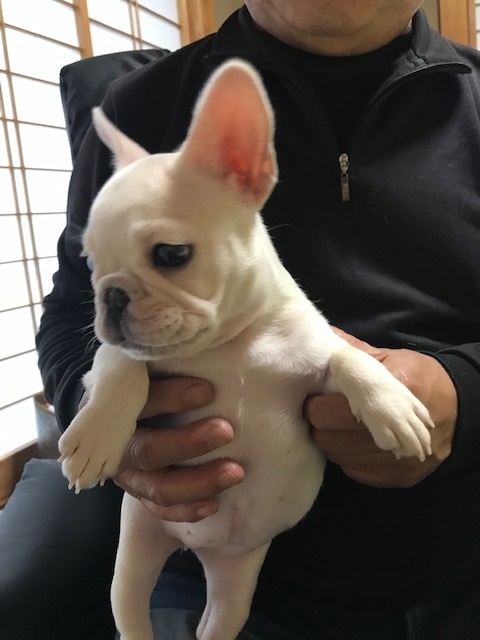 掲載されていた仔犬が可愛らしく見学を希望、西村さんよりすぐご連絡頂きました。見学に行った時には仔犬だけじゃぁ無く親犬や他の仔犬など沢山のフレンチにふれ合い、とても気さくな西村さんとお話ししていて幸せなひと時でした。帰りは近くの高速の入り口まで案内して頂きました。我が家に迎え入れて数日経ちますが元気で愛くるしくってたまらないです。(大阪府 女性)