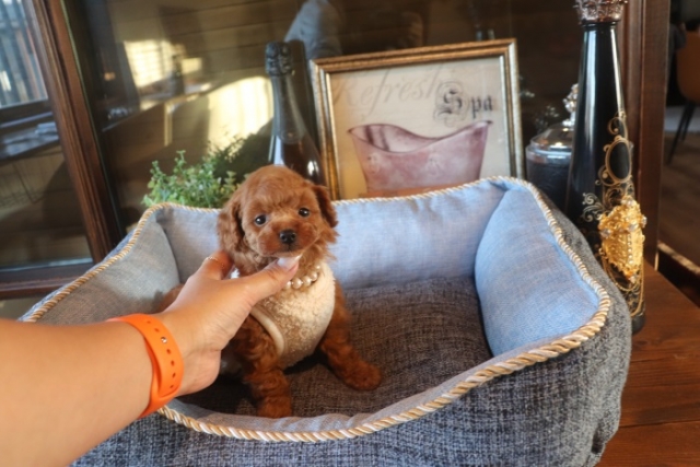 本日、我が家に小さな可愛い女の子のトイプードルがやって来ました。 遠距離という事もあり、暑い時期、飛行機の事なども心配していましだが、家に着いた途端、元気に走り、食欲も旺盛で、今まで大切に育てられてきたのだなぁ、ということがよくわかりました。 連休中にも関わらず、戸田様には、伊丹空港まで連れて来て頂き、こちらの質問にも的確に答えて下さいました。 大変信頼できるブリーダーです。 遠距離で悩まれている方も、安心して新しい家族を迎えられますよ。(兵庫県 男性)