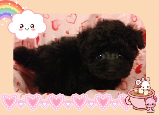 | コメント | ご覧頂きましてありがとございます。 今月までの、ご成約価格です。 パパ:シルバー2.2kg ママ:ブラック2.3kg 2019/11/20 現在の体重は950g 成犬時は2.3kg前後のタイニーサイズ予想です。 今はブラックですがパパがシルバーなのでシルバーが出る可能性もあります。 現在は親、兄弟、他の子達と元気に遊んでいます 断尾及び狼爪の切除はしていません。 当犬舎は20年近く営業していますので 安心して購入、相談出来ると思います。 |