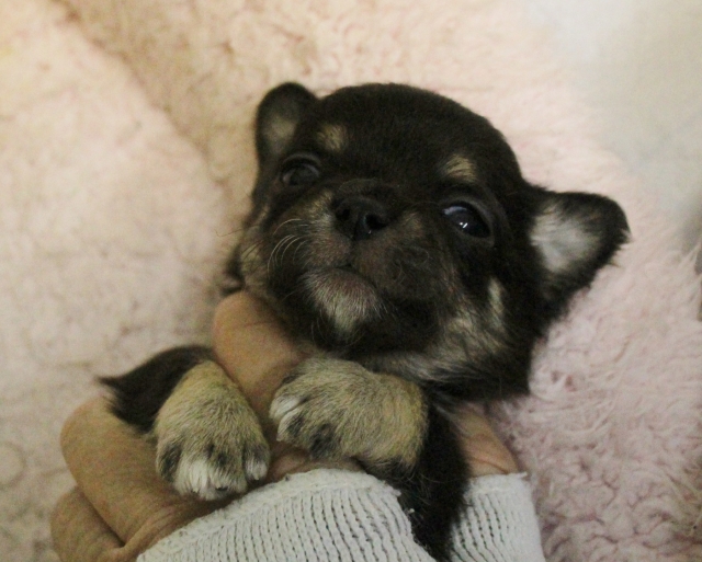 チワワ(ロング) ブラウン(ブラック)タン&ホワイト ♂(男の子) 福井県【 ブリーダーズ 】