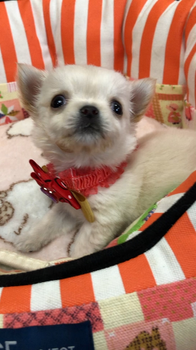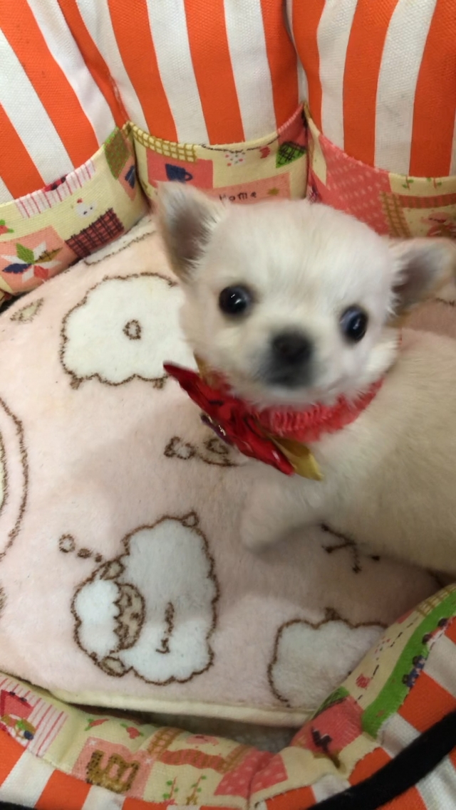 | コメント | 超可愛い、極小タイプ温厚な性格の人懐っこい、ロング、ホワイトチワワちゃんです。 ※ 11/19 6種混合ワクチン終えております! 健康状態、良好です。 癒し系の穏やかな可愛いチワワちゃんです 。 甘えん坊、食事もしっかり食べています。 抱っこされるのも大好き甘えん坊です 。 実物は、本当にもっともっともっと可愛いですよ。、 是非、ご予約ご希望、ご購入ご希望のお客様、ご見学にいらして下さいね |