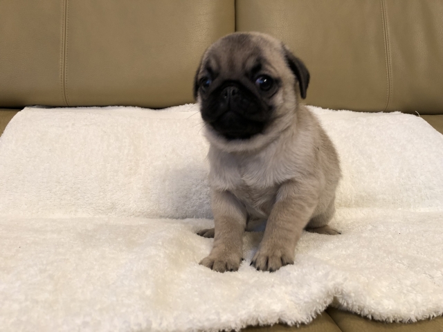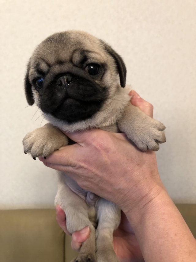 パグの飼育歴は30年以上になります。今年親の代から買っていた 黒パグを亡くしてから家を埋め尽くしているパググッズを見るたびに いつか新しい仔を迎えたいと思うようになりました。 北関東でブリーダーさんを探しているうちに木村様を知り、見学、購入の運びとなりました。 このたび性格も大変おおらかな素晴らしい仔犬をお譲りいただき大変感謝しております。 (茨城県 男性)
