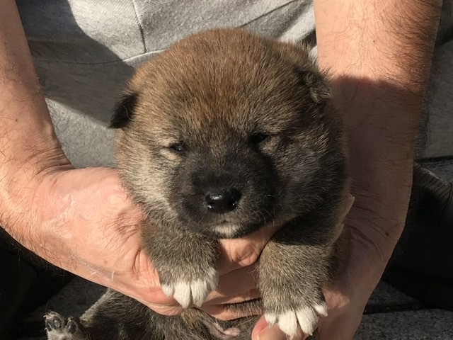 今回、ご縁により白柴を家族として向かい入れることができました。 長崎から沖縄までの移動でしたが、とても元気でみんな大喜びです。 馬越さんには、迅速な対応をしてもらい最初の電話から親切に説明して下さったので、安心して向かい入れることが出来ました。 「分からないことは、いつでも電話してください」との心強いお言葉もありがたく感じております。 家族の一員として大事に育てていきます。本当にありがとうございました。 (沖縄県 男性)