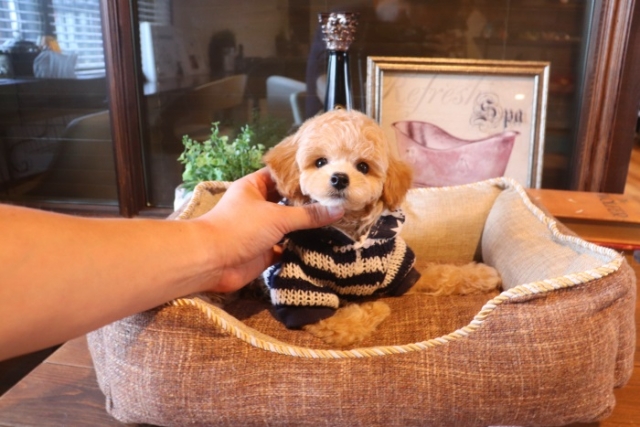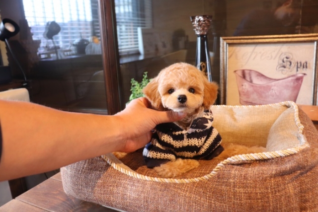 本日、我が家に小さな可愛い女の子のトイプードルがやって来ました。 遠距離という事もあり、暑い時期、飛行機の事なども心配していましだが、家に着いた途端、元気に走り、食欲も旺盛で、今まで大切に育てられてきたのだなぁ、ということがよくわかりました。 連休中にも関わらず、戸田様には、伊丹空港まで連れて来て頂き、こちらの質問にも的確に答えて下さいました。 大変信頼できるブリーダーです。 遠距離で悩まれている方も、安心して新しい家族を迎えられますよ。(兵庫県 男性)