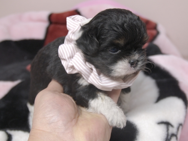 | コメント | お父さんはチワワのミッキー君です、お母さんはシーズーのシーちゃんから産まれた、可愛くキュートな女の子です。(桃リボンちゃん) 現在の健康状態は、問題有りません。 特典として、平日割引(2万円)見学並びに契約をして頂いた方。 土日祝日割引(1万円)見学並びに契約をして頂いた方で、ジャンケンで勝ったら割引いたします。 |