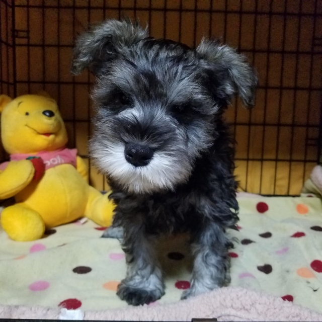 | コメント | 父親:ソルト&ペッパー 母親:ブラック&シルバー 1頭1頭、母犬も子犬も手間暇、愛情をかけて「家庭犬」を育てております。 素敵なご家族様の元へ巣立つ事を願っておりますので、お気軽にご質問やご相談をして下さいませ。 当方はとにかく、時間をかけて愛情を注ぎ、コロコロと大きく丈夫に育てる事に信念をもって育てております。 ※即日お引き渡し可能となりました。決定後のお預かりも対応致しますのでご相談ください。 |