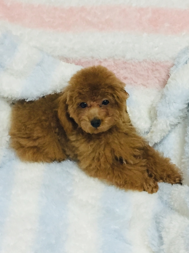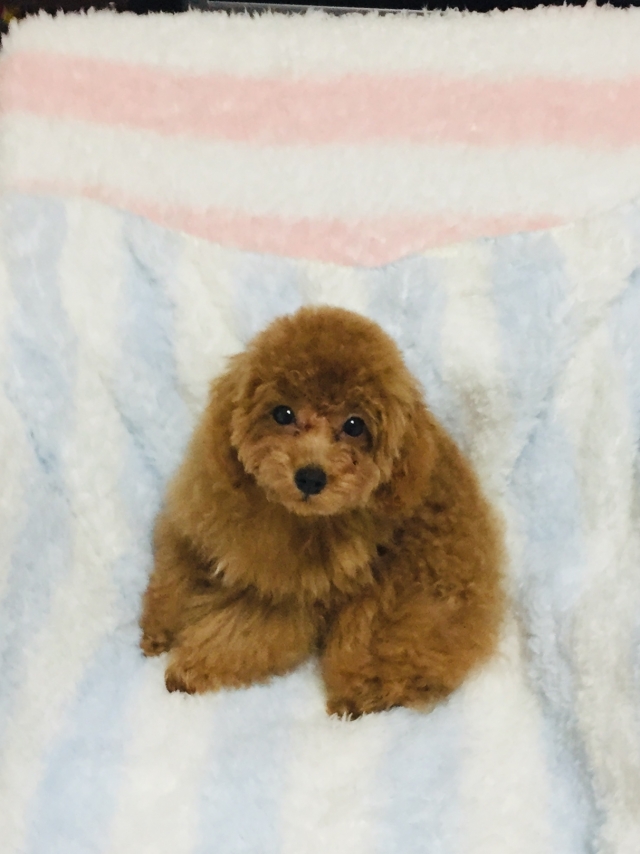 | コメント | 9月5日生まれの可愛い男の子のご紹介です お父さん、1.4キロ レッドのタルトくん お母さん、2.0キロ クリームのニコルちゃん 12月17日、体重は、984g 1月6日、体重は、1.040g 1月18日体重は、1.140g 1月30日体重は1.225g 毛色がアプリコットなのでお顔に白い毛が目立ち写真では可愛さが上手く伝わりませんが、実物は可愛い男の子です。 今は見た目レッドですが、濃い目のアプリコットの可愛い男の子になると思います。 生後4か月過ぎましたが体が大きくならないのでタイニーサイズの小さめです。 リビングで成犬たちと社会性の勉強中! トイレも失敗せずにおぼ得て来ています。 |