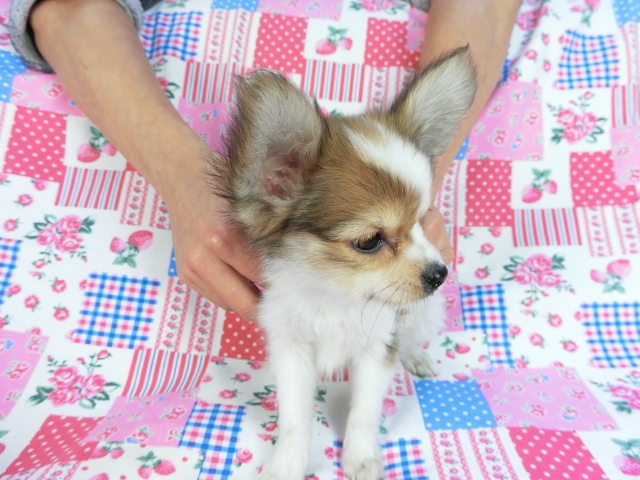 パピヨン ホワイト&レッドセーブル ♂(男の子) 千葉県【 ブリーダーズ 】