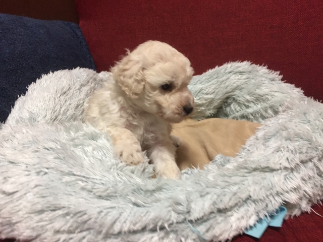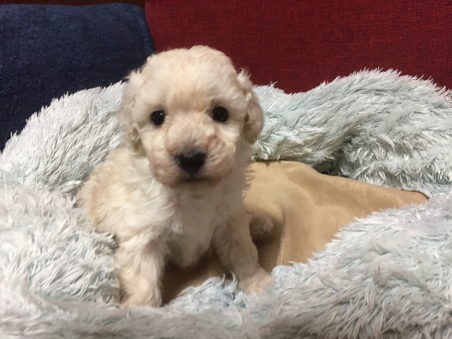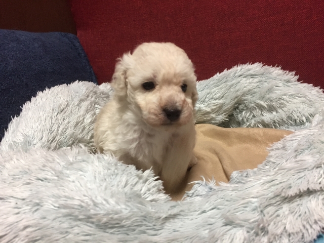 | コメント | 父犬 ホワイト 3.2kg 母犬 シルバー 4.5kg (JKCチャンピオン直子) 成犬時予想 3.0〜4.0kg トイサイズ とても温和なパパと明るく可愛いママから産まれました。 とても可愛いお顔の男の子です。 とても愛嬌があり、しっぽをふりふり寄ってきます。少し控えめで明るく元気です。 とても可愛い子です。 実物の方が可愛いので、どうぞ会いに来てください。 両親は次の3項目は遺伝子検査済です。 DM (変性性脊髄症) PRA (進行性網膜萎縮症) vWD1 (フォンウィルブランド病タイプ1) は発症いたしません。検査結果は両親クリアでした。 |