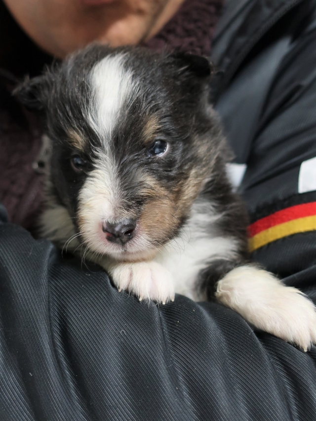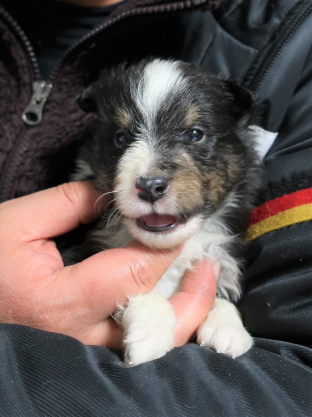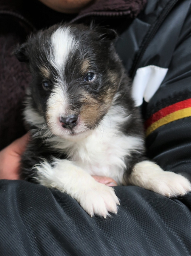 ネットブリーダーズを拝見し、バイブルーで青い目の子犬「銀くん」に一目ぼれしました。また、平山ブリーダー様の口コミがとても良かったこともあり、不安なく連絡をさせていただきました。お問い合わせ後すぐに丁寧な返信をいただき、見学の日程もスムーズに決まりました。 実際に伺うと、かわいいたくさんのシェルティちゃん達に迎えられ、たくさんの質問にも丁寧に答えてくださり、大変安心しました。お迎えした銀くんは、最初の1日はおとなしく心配になるほどでしたが、2日目からは甘えたり鳴いたりと元気を取り戻し、とても可愛い姿を見せてくれています。 平山ブリーダー様の元で大切に育てられてきたことがよく分かり、銀くんをお迎えできて心から良かったと思っています。 素敵なご縁をありがとうございました。(福島県 女性)