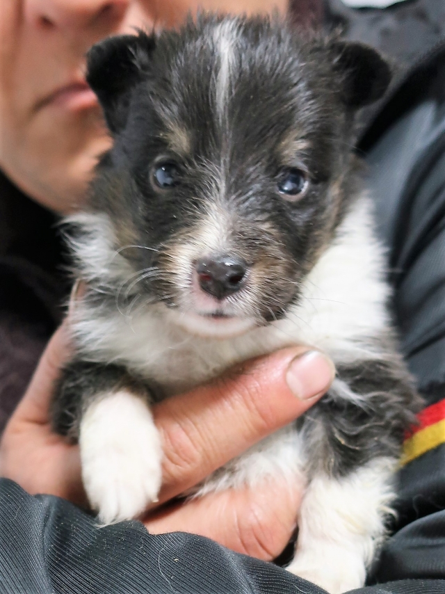 ネットブリーダーズを拝見し、バイブルーで青い目の子犬「銀くん」に一目ぼれしました。また、平山ブリーダー様の口コミがとても良かったこともあり、不安なく連絡をさせていただきました。お問い合わせ後すぐに丁寧な返信をいただき、見学の日程もスムーズに決まりました。 実際に伺うと、かわいいたくさんのシェルティちゃん達に迎えられ、たくさんの質問にも丁寧に答えてくださり、大変安心しました。お迎えした銀くんは、最初の1日はおとなしく心配になるほどでしたが、2日目からは甘えたり鳴いたりと元気を取り戻し、とても可愛い姿を見せてくれています。 平山ブリーダー様の元で大切に育てられてきたことがよく分かり、銀くんをお迎えできて心から良かったと思っています。 素敵なご縁をありがとうございました。(福島県 女性)