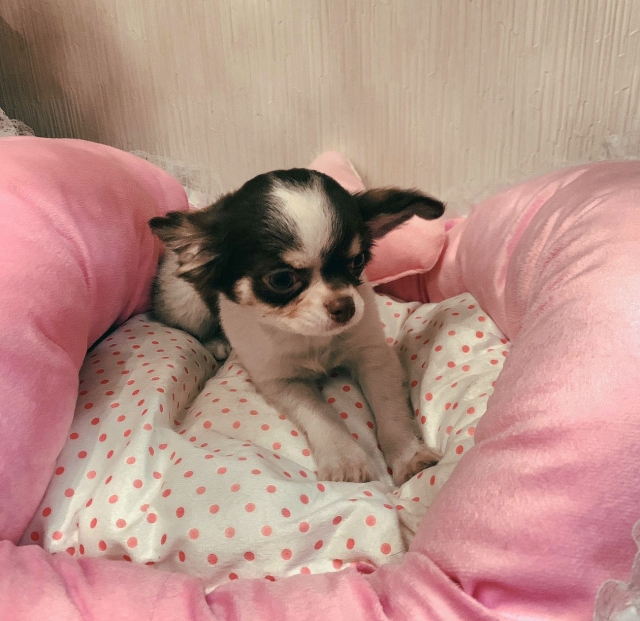 チワワ(ロング) ホワイト&チョコレート ♀(女の子) 兵庫県【 ブリーダーズ 】