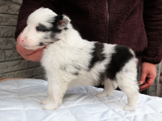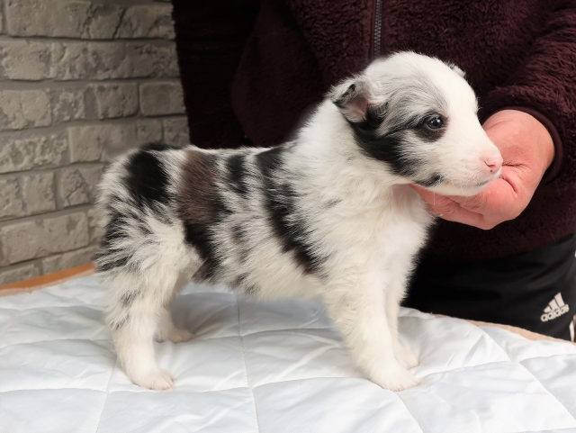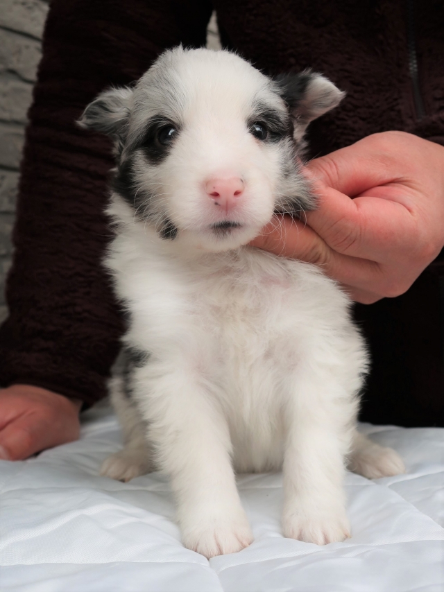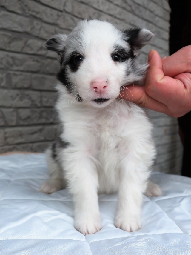 ネットブリーダーズを拝見し、バイブルーで青い目の子犬「銀くん」に一目ぼれしました。また、平山ブリーダー様の口コミがとても良かったこともあり、不安なく連絡をさせていただきました。お問い合わせ後すぐに丁寧な返信をいただき、見学の日程もスムーズに決まりました。 実際に伺うと、かわいいたくさんのシェルティちゃん達に迎えられ、たくさんの質問にも丁寧に答えてくださり、大変安心しました。お迎えした銀くんは、最初の1日はおとなしく心配になるほどでしたが、2日目からは甘えたり鳴いたりと元気を取り戻し、とても可愛い姿を見せてくれています。 平山ブリーダー様の元で大切に育てられてきたことがよく分かり、銀くんをお迎えできて心から良かったと思っています。 素敵なご縁をありがとうございました。(福島県 女性)