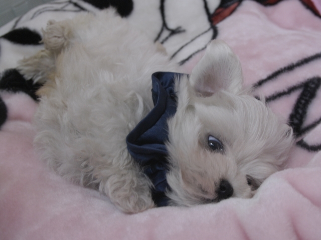 この度はとっても元気な子をありがとうございました。 見学の際は駅まで迎えにきていただき、説明もとても丁寧で安心しました。 空輸で送っていただき、ありがとうございました。 迎えてから一週間が経ち、家にも慣れて、へそ天で寝ています。 トイレトレーニングも、来た時から8割できていて、今ではほとんど失敗しなくなりました。 可愛く元気で、毎日元気に飛び跳ねています。(奈良県 女性)