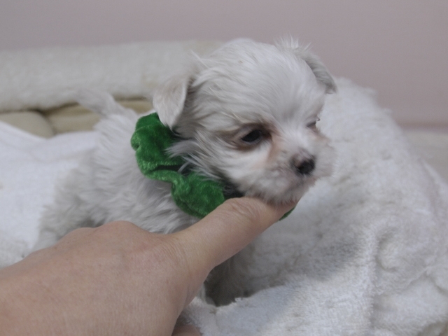 | コメント | お父さんはアラン君、お母さんはバニラちゃんから生まれたキュートな女の子です。(緑リボンちゃん) 健康状態は、問題有りません。 すくすく育っています。 特典として、平日割引(2万円)見学並びに契約をして頂いた方。 土日祝日割引(1万円)見学並びに契約をして頂いた方、ジャンケンで勝ったら値引きします。 |
