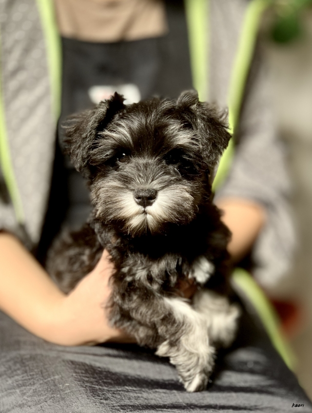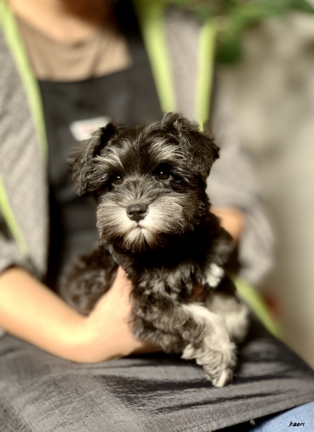 シュナウザーを主力にされているブリーダーさんだと認識しており、ボスちゃんはどうかなあと正直不安でしたがとても可愛く健康的なボスちゃんをいただきました。 掲載されていた写真より実物は想像以上に可愛くて即決し見学させていただいたその日に連れて帰りました。連絡をして、翌日行きますぅって勝手な申し出にも関わらず敏速かつ親切に対応して頂き大満足です。契約に対しても一つ一つ丁寧に説明してくださり、わかりやすかったです。この度は可愛いボスちゃんとのご縁をいただき、本当に有り難うございました。 (大阪府 女性)