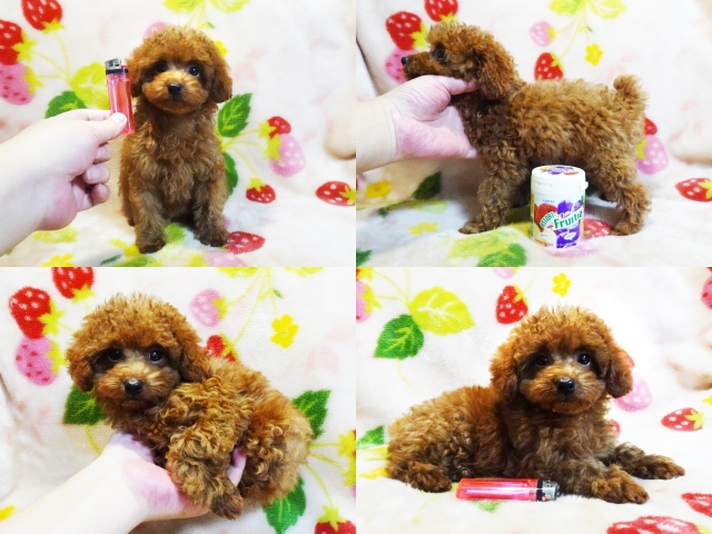 | コメント | ☆ティーカップ~タイニー予想☆懐っこくて甘えん坊な男の仔♪ まん丸お顔に短いお鼻でうるうるな瞳がめちゃめちゃ愛らしい!! 屈託のない好奇心旺盛な性格で初めての方でも飼い易い仔です☆ 毛質最高しっかりした巻毛に毛量も充分で綺麗なレッドですよ^^ 小さくてもとっても元気ティーカップ君たちと仲良く遊んでます♪ 生後100日の体重は約1250g成犬予想体重2㎏台前半だと思います!! 身体のバランスが良くしっかりした硬い胴で骨量多い丈夫な仔☆ 現状噛合せや骨格・関節形成など欠点の心配は一切ありません!! 離乳も済み食欲旺盛でドライでカリカリ!!いつでもお引き渡しOK♪ 素敵なご家族様からのお問い合わせをお待ちしております^^ 【その他諸費用】 5種ワクチン接種費用:6千円【税・画像入証明書付・健康診断込】 ※お迎えの場合で【生体代金】+【ワクチン接種費用】のみです。 ●血統書登録団体:JKC(※3ヵ月以上要す事もあります) |