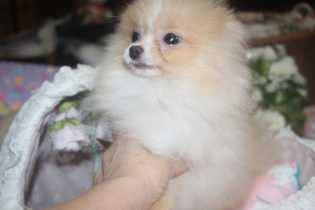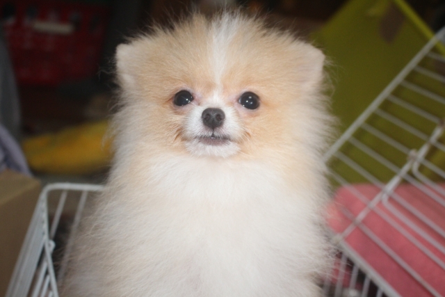 ポメラニアン クリーム(薄いパーティー柄) ♂(男の子) 奈良県【 ブリーダーズ 】