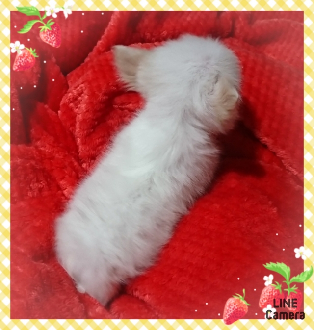 | コメント | 6頭兄妹の唯一ロングの男の子です。 あとの兄妹は、スムースなんですよ~ とても優しいお顔~まったり癒し系です。 性格もおっとりさんです。 小ぶりで可愛いです~ お鼻の色素も成長と共に黒くなってきます。 お母さんめっちゃ可愛いお顔です 詳しくは、お問い合わせください。 2月17日 体重460gになりました。めっちゃ元気で悪さも始まり これからどんどん活発になると思います。見かけよりずっしりしてます。 最高なボディ作りですよ。 |