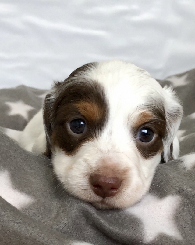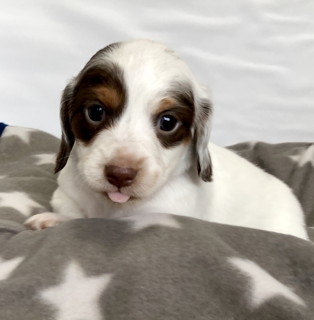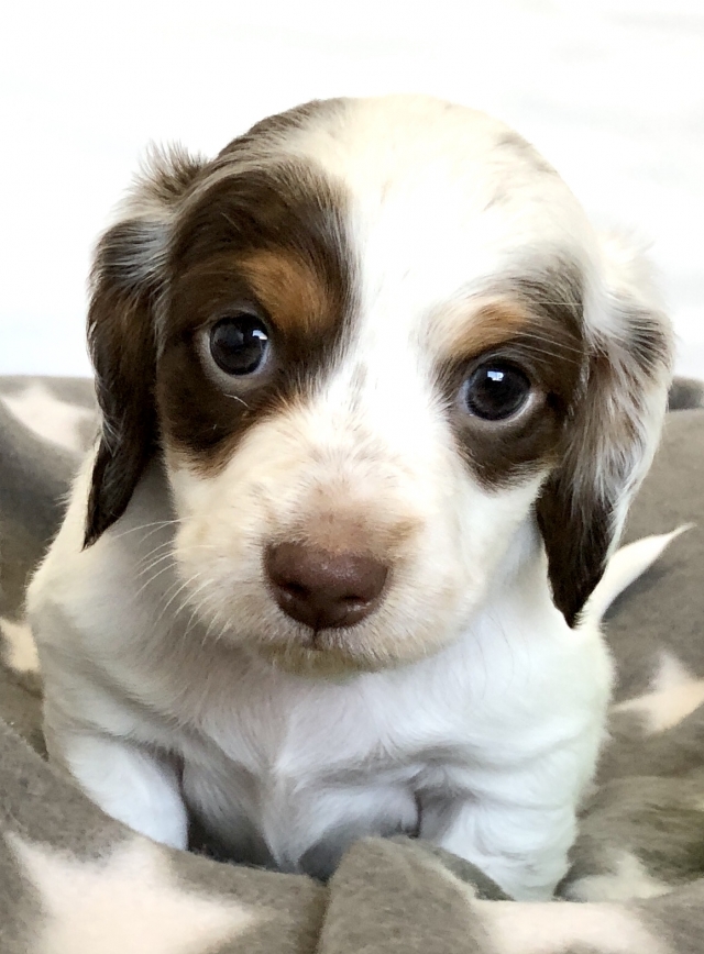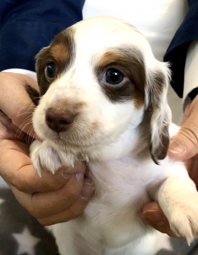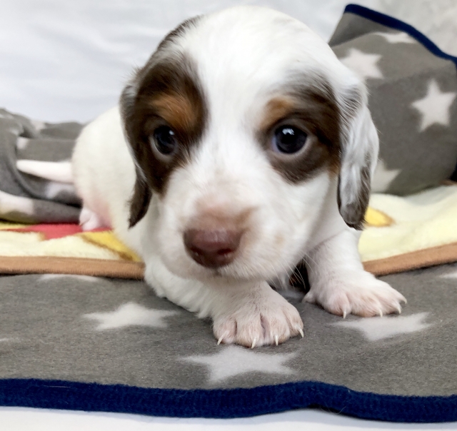 ミニチュア・ダックスフンド(ロング) チョコレートタン チョコタンパイボールド ♂(男の子) 神奈川県【 ブリーダーズ 】