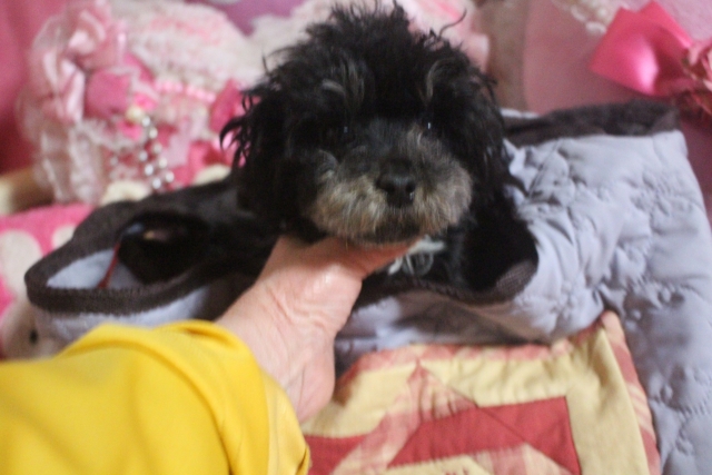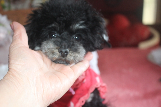 | コメント | とても可愛くて 手の平サイズの小さい子 おとなしくて賢い子です お耳の付け根が少し薄くなっています。 その為少しお値段下げました。 3月13日現在1,3kgの極小ちゃんです。 お顔も毛の巻も可愛い子ですが 性格がほんと可愛い子で、早く大事に してもらえるところが決まったら良いのですが。 画像撮る時も、いつもじっとしてくれていて いつも懐の中に入れてやりたい子です。 自慢の子に、なると思います。 変わった毛色の好きな方には最高の子です。 黒い子なので赤い服を作ってやりました。 着せてやると一層可愛くみえます。 4月10日カバンに入れて撮ってみました。 小さい子と、わかってもらえるとよいのですが。 5月5日の体重1,6kgです。 体長 体高は変わっていませんが 少し肥えたようです。 食欲モリモリで、あっという間に食べてしまいます。 5月22日365000円から10万円引きの265000円に値引きさせて頂きました。 |