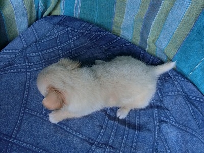 この度は可愛い仔犬をいただきありがとうございました。元気な子で家に帰ってからも可愛さ満載です。当日も近くまでお迎えいただき、仔犬の変更も快くお受け頂きました。お土産もたくさん!良いブリーダーさんに出会えて感謝しています。ありがとうございました。(山梨県 男性)