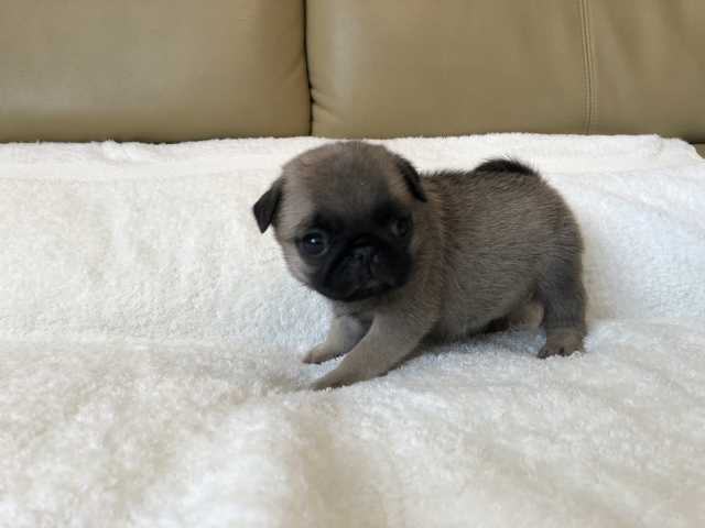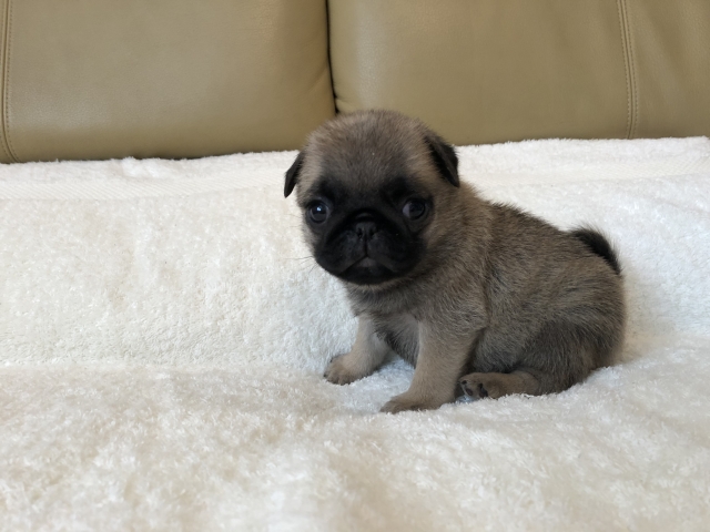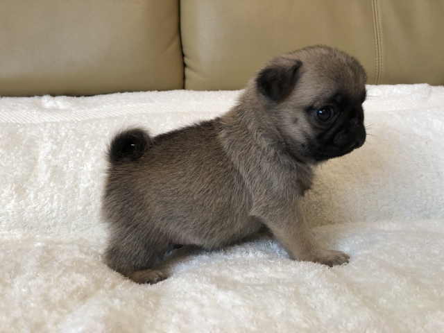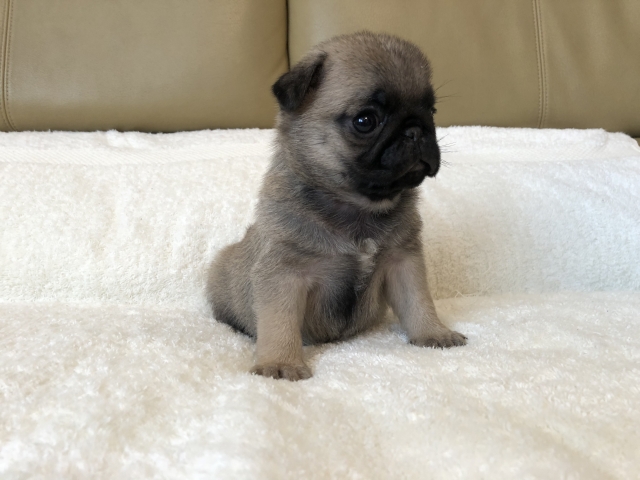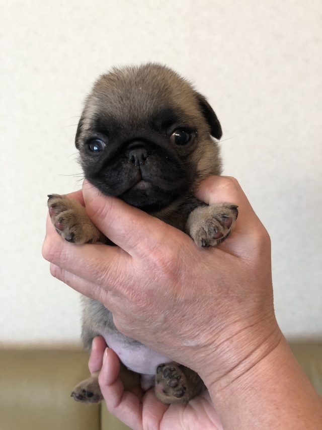 パグの飼育歴は30年以上になります。今年親の代から買っていた 黒パグを亡くしてから家を埋め尽くしているパググッズを見るたびに いつか新しい仔を迎えたいと思うようになりました。 北関東でブリーダーさんを探しているうちに木村様を知り、見学、購入の運びとなりました。 このたび性格も大変おおらかな素晴らしい仔犬をお譲りいただき大変感謝しております。 (茨城県 男性)