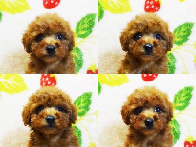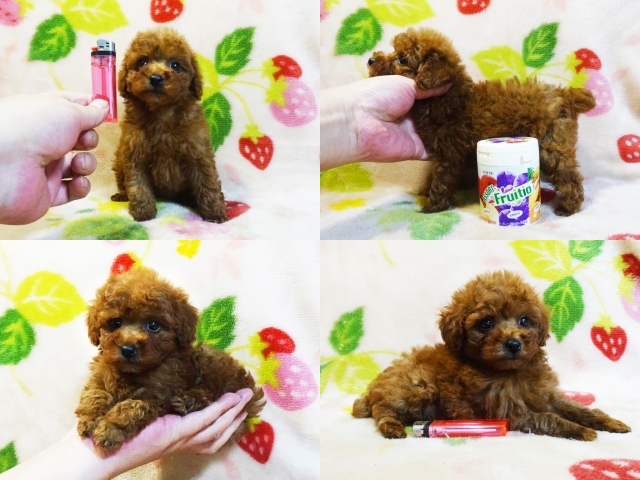 | コメント | ☆☆ティーカップサイズ予想☆☆ホント小っちゃくてビックリですよ!! クリクリのお目々に超短いお鼻チビチビめっちゃカワイイ女の子♪ のんびりとした優しい性格で初めての方にでも飼い易い仔です☆ 毛質最高しっかりした巻毛に毛量も充分で綺麗なレッドですよ^^ 小さくてもとっても元気テーカップ兄弟たちと仲良く遊んでます♪ 生後60日の体重は約590g成犬予想体重2kg未満だと思います!! 身体のバランスが良くしっかりした硬い胴で骨量多い丈夫な仔☆ 現状噛合せや骨格・関節形成など欠点の心配はありません!! 離乳も済み食欲旺盛でドライでカリカリ!!いつでもお引き渡しOK♪ 素敵なご家族様からのお問い合わせをお待ちしております^^ 【その他諸費用】 5種ワクチン接種費用:6千円【税・画像入証明書付・健康診断込】 ※お迎えの場合で【生体代金】+【ワクチン接種費用】のみです。 |