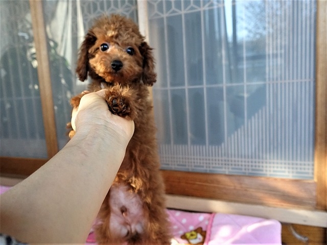 | コメント | この月齢からですと、自然体でママから離れ(十分な愛情は一生に渡り性格に良い影響)みんなと十分に遊び思いやりの社会性が身に付き人にも従順の素質が備わって安心して飼えます。 固いフードを食べ少しのことで体調を崩すことも無く長いお留守番も大丈夫となります。 ※ 撮影時に光が入り込んでいて色むらがありますが、綺麗な艶あるレッドです。 3カ月ですので、環境が劇的に変わるお迎え直後にトリミングサロンには行けませんので軽くカットしています(お迎え直前にも整えます) ★特徴 アイラインがベージュの子が多い中、黒なので より大きく真ん丸目が可愛い 兄妹で最も小さな子・成犬時にも片手で抱っこ、食欲旺盛元気いっぱい(獣医師の健康診断書有) 濃い艶のある巻が強いレッドカラーは上等わんこの印。 真っ黒で短い鼻が可愛い。 天真爛漫、甘えん坊 どの子とも楽しく遊べる社会性のある子。 小さくても日々のドッグランとマッサージで足腰丈夫 元気も大切。 欠陥無く健康体(獣医師の診断書有)とても可愛い容姿の上の健康長生き大切 歯磨きして歯周病菌に犯されない丈夫な身体をと歯磨き遊び、歯のケアの大切さもご指導しています。 20歳越えの元気な長寿を目指してください。 育ちの違いで、飼ってみて違いが分かる賢く大変育てやすい、当方リビング育ちです。 パパ:レッド2.8k ママ:レッド3.2k <別途料金> ●空輸代¥20000 九州内 最寄り場所でのお迎え交通費¥10000程度 お気軽に申し付けください。 ●混合ワクチン代1回分に付き¥7000で現在2回接種¥14000 ママに長く付いて母乳から免疫を貰っているので当方子犬は初年度2回接種で最終(お迎え後の混合ワクチンは接種無しで良し)・・ワクチンは本来子犬の身体には良くないものなので、効能は母乳から貰い回数が少ない方が良いとされる。1回目も他より遅い) 内税となっていますので、別途消費税納金はありません。 カード決済(ご来店できない方でも可能、決済料当方負担)ご来店が難しい方でも可能ですのでお気軽にご相談ください。 ★長生きの秘訣 お迎え時に直接来店では無く空港等遠隔の場合でも飼主様が楽ちん子犬が自分で歯磨き習慣が身につく方法をご指導しどの子もできるようになっております(お迎え後の確認済) ※飼い始め応援!・・躾、健康面のケア、スターターグッズ等いろいろなご質問にお答えしてます。 安心して直ぐに飼い始められるようお気軽にお尋ねください。 ★ご質問が多いので 当ブリーダーショップは子犬の自然な乳離れで十分にママと一緒に居らせ、スタップを雇用せず夫婦で心身の管理できる少数の成犬(繁殖犬)としておりますので、ママのお産の間隔も長いです。 この度は所要も重なり8カ月以上ブランクが有り子犬紹介となっております。 ★健康状態・・良好 混合ワクチン済・健康診断良好・駆虫済 (健康診断書とワクチン証明書有添付) ★環境・・・自然豊かな田舎で私共夫婦とママとリビングで生活し良い刺激がいっぱい、表情のある穏やかで社会性のある性格が培われています。お迎え後も直ぐにご家庭に馴染み人懐こく扱い易い子達です。 躾の基本は、飼い主様が完全上位に立ち子犬が従順であることだと言われています。従順さはママのお手本通り培われています。 親から早く離されたり、兄弟仲間と遊んだ経験の少ない子は突然理由なくキレたり、獰猛だったりと昨今、問題視されています。 明るく元気ですが、聞き分けが良く吠えずお隣等が近いマンションにも適した穏やかさです。 ★トイレ躾 ゲージの中でのトイレトレーニングは躾済でお渡し。お迎え後の違った環境では変化することもありますので、その際にはお気軽にご相談ください。 *アニコム動物保険の代理店 (動物保険会社では、倒産した時に国が保証する2つの保険会社の1つ)手厚い補償で好評の日本最大の動物保険会社です。(ブリーダーショップとしては、当店が唯一認定店)・・・アニコム1ヵ月100%動物保険プレゼント。 ※ 動物取扱士・家庭犬トレーナー・トリマー・小動物看護士・ペット繁殖指導員の居るブリーダーショップ ★アフターフォロー丁寧:繁殖直売のブリーダーショップで子犬は愛おしい存在です。ブリーダー(繁殖者)や中間業者やペットショップに渡すことをせず一般ご家庭の飼い主様にのみお迎えいただいております。 <プレゼント> ★ アニコム損保動物保険すまいるべぃびぃ(当ブリーダーショップ代理店からのプレゼントで手続きは当方で全て行いますので、飼い主様による手続きは一切ありません) ★ わんこ母子手帳(全国ペット協会会員) ★慣れたフード1袋(お迎え当初は皆様戸惑われますので、与え方の詳しいプリントと1食づつの小袋も用意) ※ 飼い主様スターター準備:ゲージ(来店の方に仕入れ価格でお譲り・遠隔地でのお迎えの場合 手配のお手伝い)・トイレトレー・フード皿・ベッド・給水器等・サークル <当舎の特徴> ★ 心身共に管理できる少数の繁殖犬両親から子犬を育てています。 ★