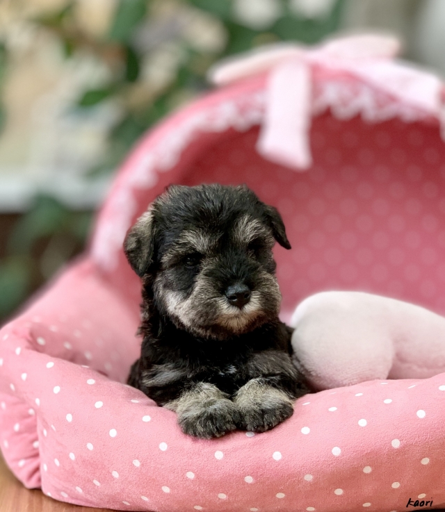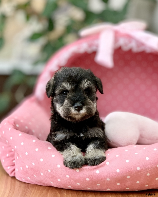 シュナウザーを主力にされているブリーダーさんだと認識しており、ボスちゃんはどうかなあと正直不安でしたがとても可愛く健康的なボスちゃんをいただきました。 掲載されていた写真より実物は想像以上に可愛くて即決し見学させていただいたその日に連れて帰りました。連絡をして、翌日行きますぅって勝手な申し出にも関わらず敏速かつ親切に対応して頂き大満足です。契約に対しても一つ一つ丁寧に説明してくださり、わかりやすかったです。この度は可愛いボスちゃんとのご縁をいただき、本当に有り難うございました。 (大阪府 女性)