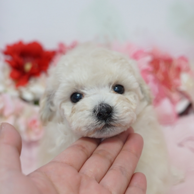 | コメント | ☆当犬舎のワンちゃんをご覧いただきまして、誠にありがとうございます☆ 【子犬について】 成犬時は2キロ前後 予想です。 つぶらな瞳で見つめられるとキュンキュンしちゃいます。 【パパについて】シルバー 1.7キロ 【ママについて】ホワイト 2キロ 現在、多くのワンちゃんと共同生活しながら、犬社会を学びつつスクスクと成長中です。 ご見学も可能ですので、ぬいぐるみみたく愛らしいこの子に是非会いに起こしくださいませ。 お待ちしております。 |