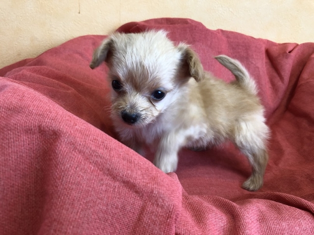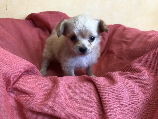 | コメント | トイプードルのママとチワワのパパから誕生した かわいいかわいいチワプーの男の子! ご家族の一員にしてもらえれば、楽しい生活になりますよ! 2月8日現在の体重は300gです。 ワクチン1回分(5500円)は別途お願い致します。 お引渡しは2月下旬頃ですが、生体価格の30%以上ご入金でご予約は大丈夫です。 ご見学はあらかじめ日程をお知らせください。 |