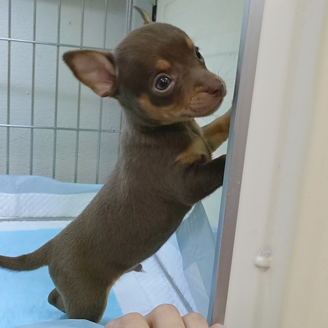 | コメント | 父親…チワワ 母親…ミニチュアピンシャー 物怖じしなく、しっぽフリフリ寄ってきます。 ムッチリ系です(^-^)♪ ※断尾していません。 ※必ず見学が必要になります。 見学の際は大阪のショップに来て頂くことになります。前もってご連絡ください。 素敵なご縁があります様に。 沢山のお問い合わせお待ちしております! |